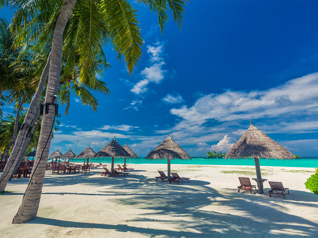 Arhipelag Maldiva sastoji se od 1.190 malih koralnih ostrva grupisanih u 26 atola. Zauzimaju površinu od 104.000 km2. Neka ostrva su ravna i peščana, dok su druga prava tropska sa veoma bujnom vegetacijom. Okružena su koralnim grebenima i, tirkiznim lagunama sa bogatim podvodnim životom, kao i belim peščanim plažama po kojima su u svetu poznata. Ostrva namenjena turistima, imaju uglavnom jedan hotel koji predstavlja svet za sebe. Na svakom od ostrva stiče se utisak da ste u društvu Robinzona Krusoa. Najradije ih posecuju mladenci, poznavaoci podvodnog sveta i ronjenja ,ljubitelji mira i romanticnih destinacija.